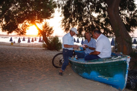 - Stedet er en slags sommerhus for os, siger Ole Nissen. Vi er kommet tilbage til Platanias i 8 år. Han kigger kærligt på sin kone og sølvbrudeparret ser ud til at trives gevaldigt. Længere henne sidder en ung familie med en større børneflok. De har det fint ude i Agia Marina, nær Platanias.