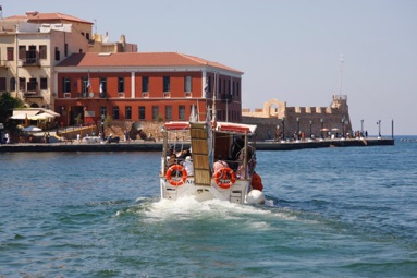 - Så skulle I også opleve en tur på havet. Det kan være en heldagstur til Santorini 2 timers sejlads fra Chania, det kan være et par timers kryds i en båd med glasbund eller en romantisk solnedgang set fra en gammel færge.