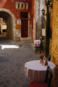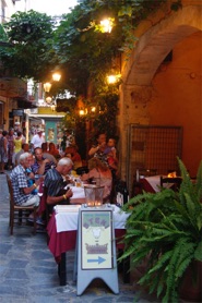 Rækken af restauranter tiltager videre ind i byen. Flere restauranter er etableret midt i gamle venetianske bygninger uden tag. Ruinerne er omdannet til romantiske oaser med lys, blomster og levende musik.