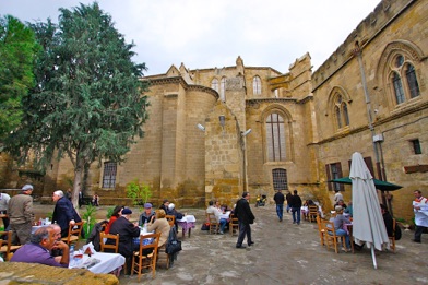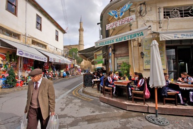 Jeg strejfer rundt på egen hånd i det charmerende men noget forfaldne kvarter i den gamle bydel. I markedshallen kigger de tyrkisk-cypriotiske mænd lige op med et nik og et smil midt i deres Backgammon.