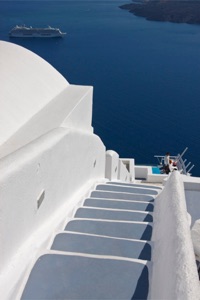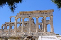 Civilisationens vugge med dristigt stræbende søjler mod en knald blå himmel. Hvide huse og et gennemsigtigt hav i smaragdgrønne og blå nuancer. Havets klukken mod bolværket, mens vi flytter baller på knirkende fletstole under et bord med hvid papirdug, dukkebestik og små blikkander med harpiksramt vin. Brødet, olivenolien og de solmodne grøntsager, der smager af rigtige tomater og agurker. Den stærke smag af hvidløg i den bløde, friske youghurt. Venlige, smilende mennesker. En flammende solnedgang i den gyldne Metaxa.