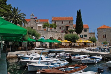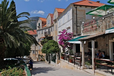 Bag hotellet troner en flad bjergtop med 800 meter til toppen. Den minder om Table Mountain i Cape Town. Herfra er der en fremragende udsigt over den kroatiske skærgård. Da jeg tager en smuttur derop kan man se helt til Italien næsten 200 km væk. På vejen derop kører vi gennem de hyggeligste landsbyer og ser hvordan øen satser på at dyrke mere vin. Nye vinmarker plantes op af højsletternes bakker. Med god grund. Den lokale hvidvin er billig, velsmagende og forfriskende. Den billige rødvin er derimod ikke særlig god. Til gengæld er det muligt at købe sig til en meget bedre lokal rødvin, bla. Sv. Vid fra Bols store vinproducent og vininstitut på havnen. Deres olivener og olivenolie er derimod en temlig smagløs oplevelse.