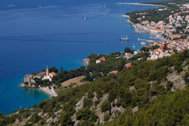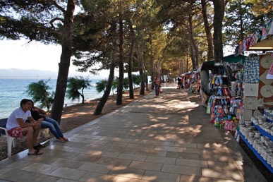 En meget fin og bred gangsti følger kysten under skyggefulde pinjetræer ud til de mange småstrande for at slutte ved Kroatiens mest kendte strand Slatni Rat ca 1 km fra byen. Den strækker sig i en spids med glimrende strande på begge sider. Imellem de to er der skyggefulde barer og restauranter, tilbud om massage, iskiosker og sågar en velassorteret frugtbod.