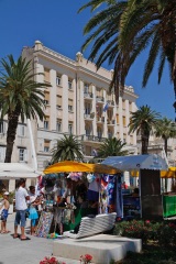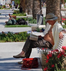 Ved siden af jernbanestationen midt i havnen, hvor man evt. kan opbevare sin bagage, ligger den fine bystrand. Denne dag synes hele byens befolkning at være søgt herned for at svale af. Alle står ude i vandet eller ligger i skyggen. Termometret nærmer sig da også de 40 grader i skyggen.