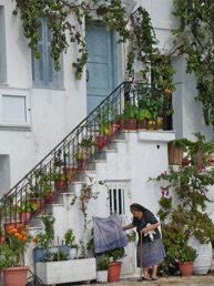 Man kan vælge at tage en af de mange strandbåde om til Valtos-stranden, hvis heden er for slem. Ellers er det en fin lille vandretur op gennem snævre handelsgader til en imponerende udsigt over by og strand. Heroppe på bakkeryggen leger børnene på gaden, mens de voksne meder garn, broderer eller får sig en uforpligtende snak. Enkelte huse er omdannet til pensionater eller små hoteller med en fremragende udsigt over borgen og strandbugten. Heroppe får vi en hyggelig aften på Sakis Taverna i selskab med familien Tsovilis.