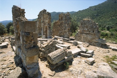 På kanten af skråningen ned mod den frodige slette ses resterne af en byzantinsk kirke - en såkaldt Episkopi. Gulvet og søjlerne i kirken viser resterne af et endnu ældre tempel. Her har været dyrket andre guder.