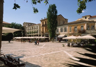 Syntagme-pladsen er Nafplions charmerende centrum. Den meget harmoniske plads er belagt med marmorfliser. Sammen med de tilstødende gader virker det hele mere italiensk end græsk.