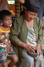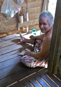 Tre-fire generationer bor under samme tag, 16 børn og voksne. Privatliv er der ikke meget af, men livsglæden virkede ægte nok. I stedet for el-ovn og fladskærm så vi brændekomfur og et lille 12-tommers tv. Ventilationen på de 30 grader varme dage klares ved, at der er nogle centimeters mellemrum mellem gulvbrædderne i huset, som er bygget på ”stylter”.