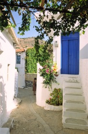 Inden for få år vil denne skønne, gamle by med sine snævre stræder være genopbygget af rige grækere og udlændinge. De er allerede godt igang med at opkøbe og istandsætte de charmerende, men faldefærdige huse. Et engelsk par fortæller os, at de gamle huse kunne købes for mellem 130.000 og 300.000 kr. Nogle af deres venner havde netop istandsat et skønt hus. Fra pittoresk forfald til postkortmotiv.