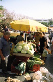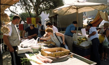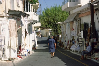 Vi kører ned til Agios Nikolaos. Her om onsdagen er det markedsdag. Vi vover os gennem det hektiske marked, hvor kød, fisk, tøj og sko sælges under asen og masen. Ingen drømmekøb. I stedet nyder vi en kaffe i bymidten med udsigt til en tæt strøm af ferieklædte Nordeuropæere. I disse omgivelser kan selv den iøjnefaldende smagløshed tilgives.